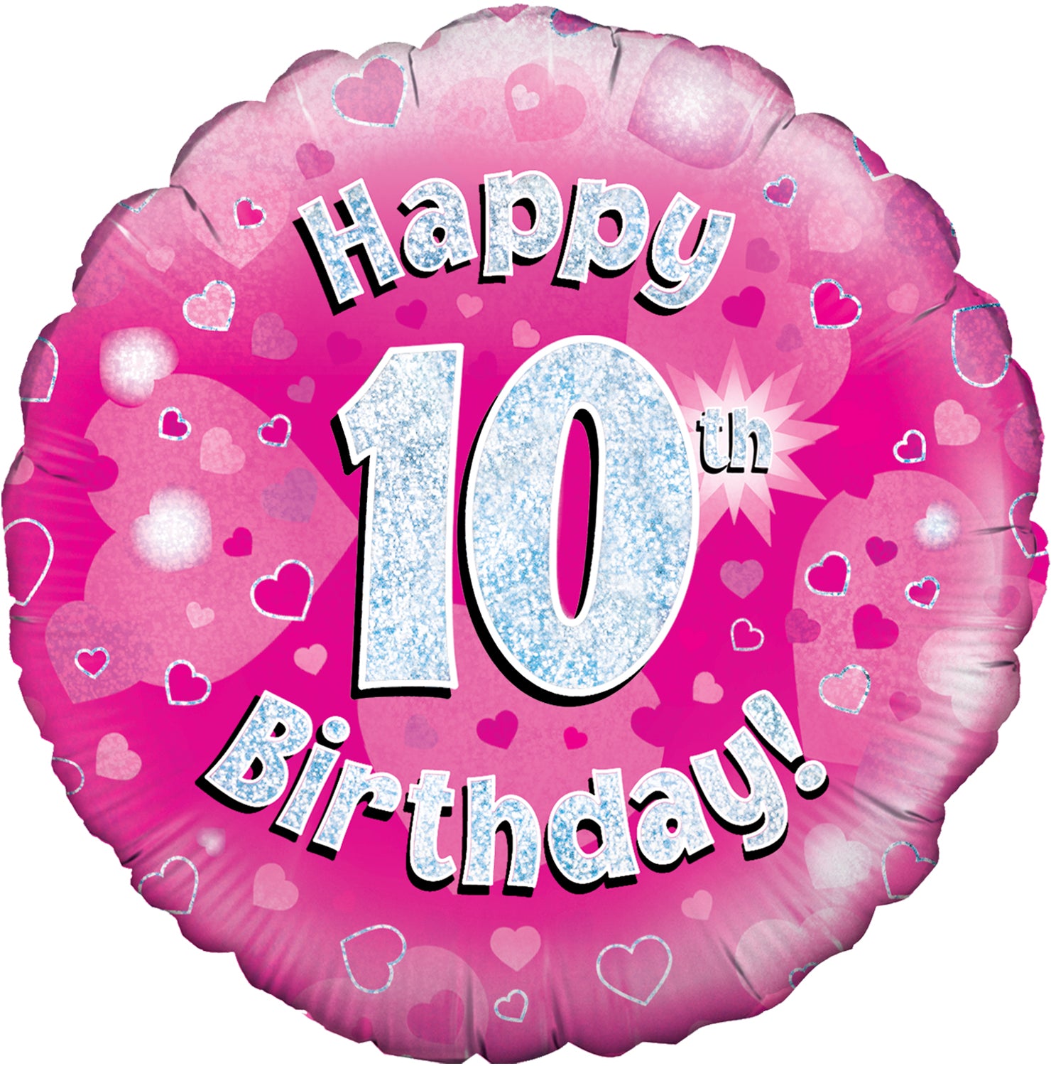 This 18inch foil balloon is bright Pink and printed with 'Happy # Birthday' in holographic text. It looks great with bright Pink foils and bouquets.